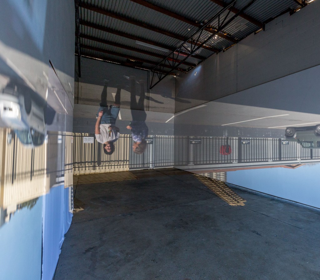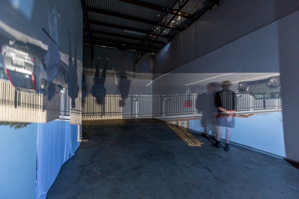 During this time, Kinly continued their study of light phenomena, this time as an experimental embodiment of ideas inspired by hermetic philosophy. The work is situated as a visual aid to inquiry, as a site to explore and understand the universe and how it might work. Through the use of the camera obscura, Kinly summons histories of art, image making, and astrological study, and conflates these with a kind of contemporary poetic reasoning. Specific to The Walls, Kinly makes minimal interventions in the space, yet brings the outside in, squeezes the large into the small, and, quite literally, turns the world on its head. ‘touching in the all’ is part metaphysical inquiry, part intuitive meaning-making, and a full and humble attempt to glimpse the divine.